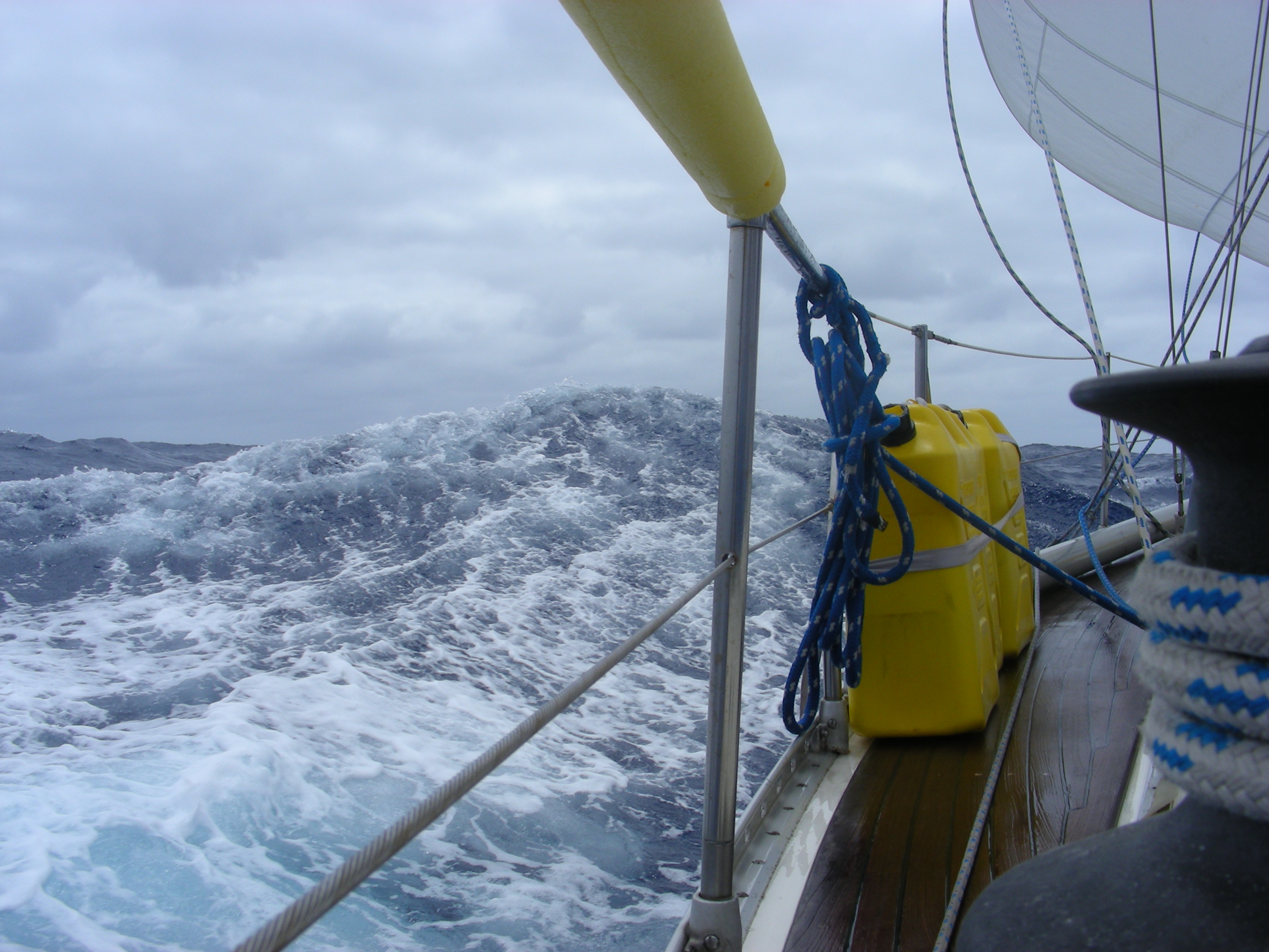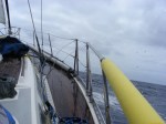 It became the topic of the day i.e. when is it going to change? Well, after the 8th day we saw some hope. The wind didn’t go down but something was happening. After living ‘on our ears’ so to speak we could feel a slight difference down below. The motion had changed slightly. The boat was taking the seas at a slightly different angle but the wind still remained high running at 20-25knots. The motion was still uncomfortable but our spirits were rising as it became more and more evident that the swell was moving to the north. However, the boat now had to contend with swell from 2 directions but as the days passed the swell was definitely changing and eventually settled into a north east direction.
