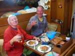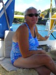 Doesn’t take long for Connie to get the bathing suit on and head over to the charter dive boats and returns with hamburgers in a baggie!