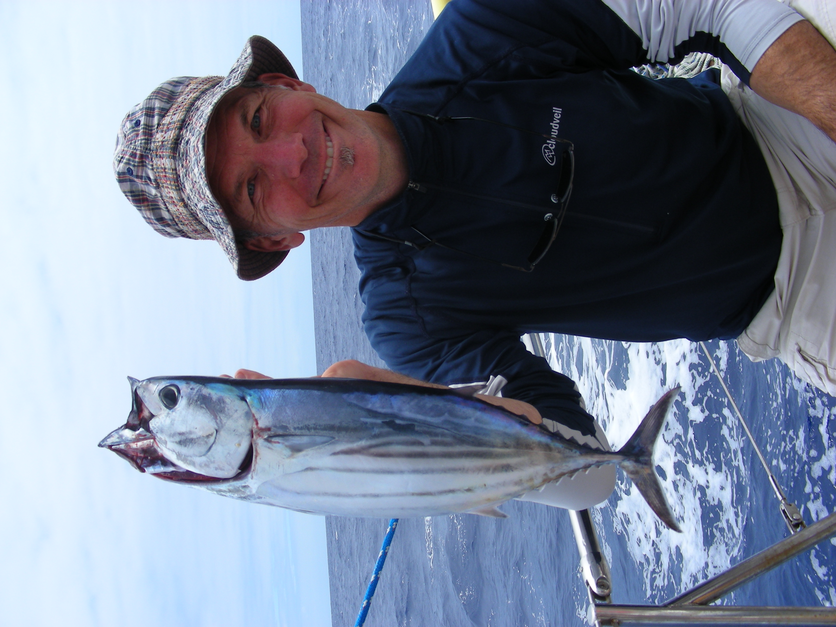 None of us are real fisherman but we occasionally drop the hook to trail behind the boat. I have to say we were happy to catch something (still to be identified but tuna like) but not happy with the taste. So, the fishing line and rod remain in place but not seeing much action.