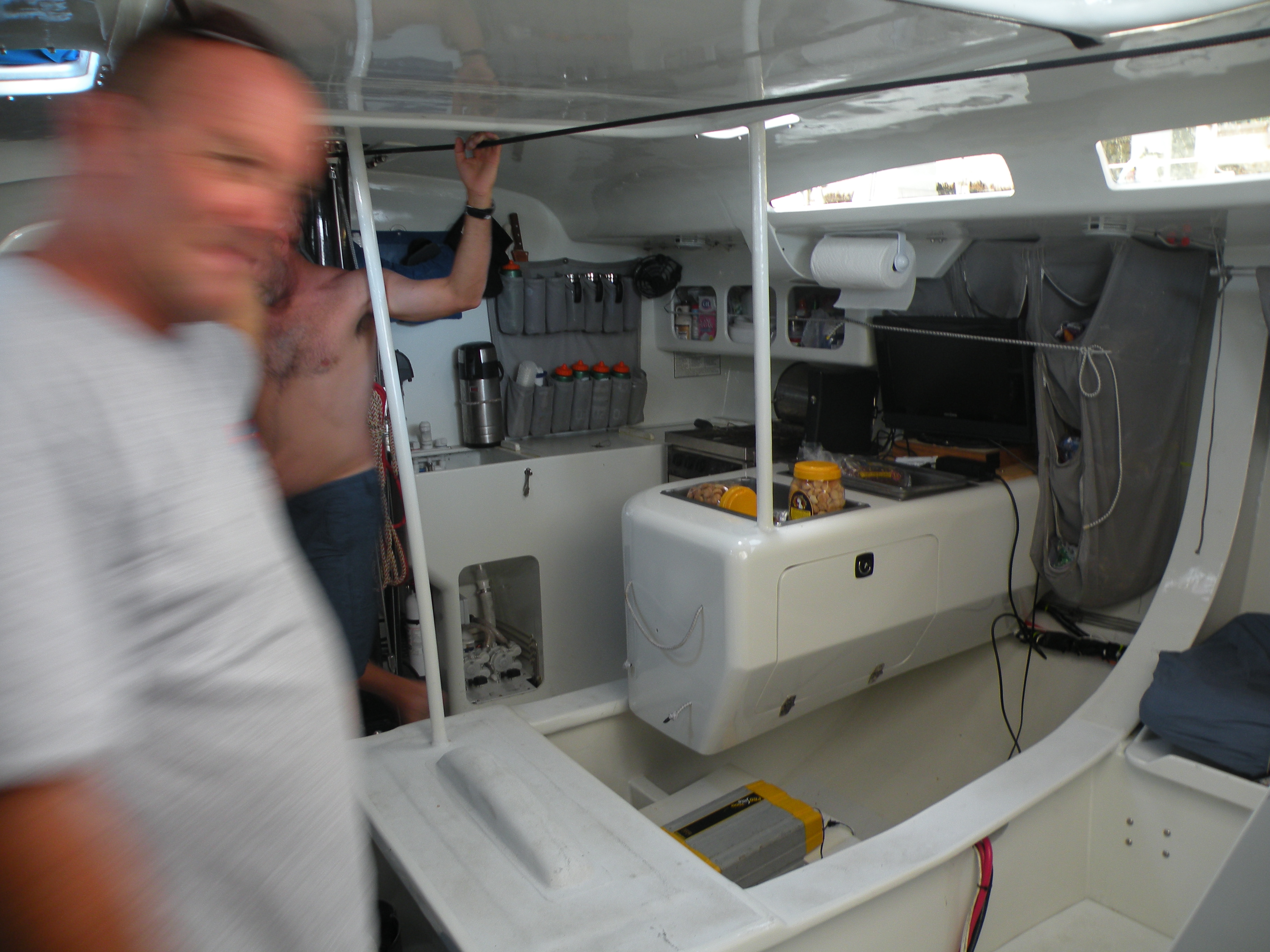 Or how do I find a place to sleep? It would also be quite noisy. These boats are made out of hi tech fibres of carbon and epoxy and I think it would be like living in a drum.