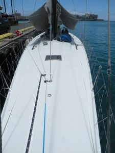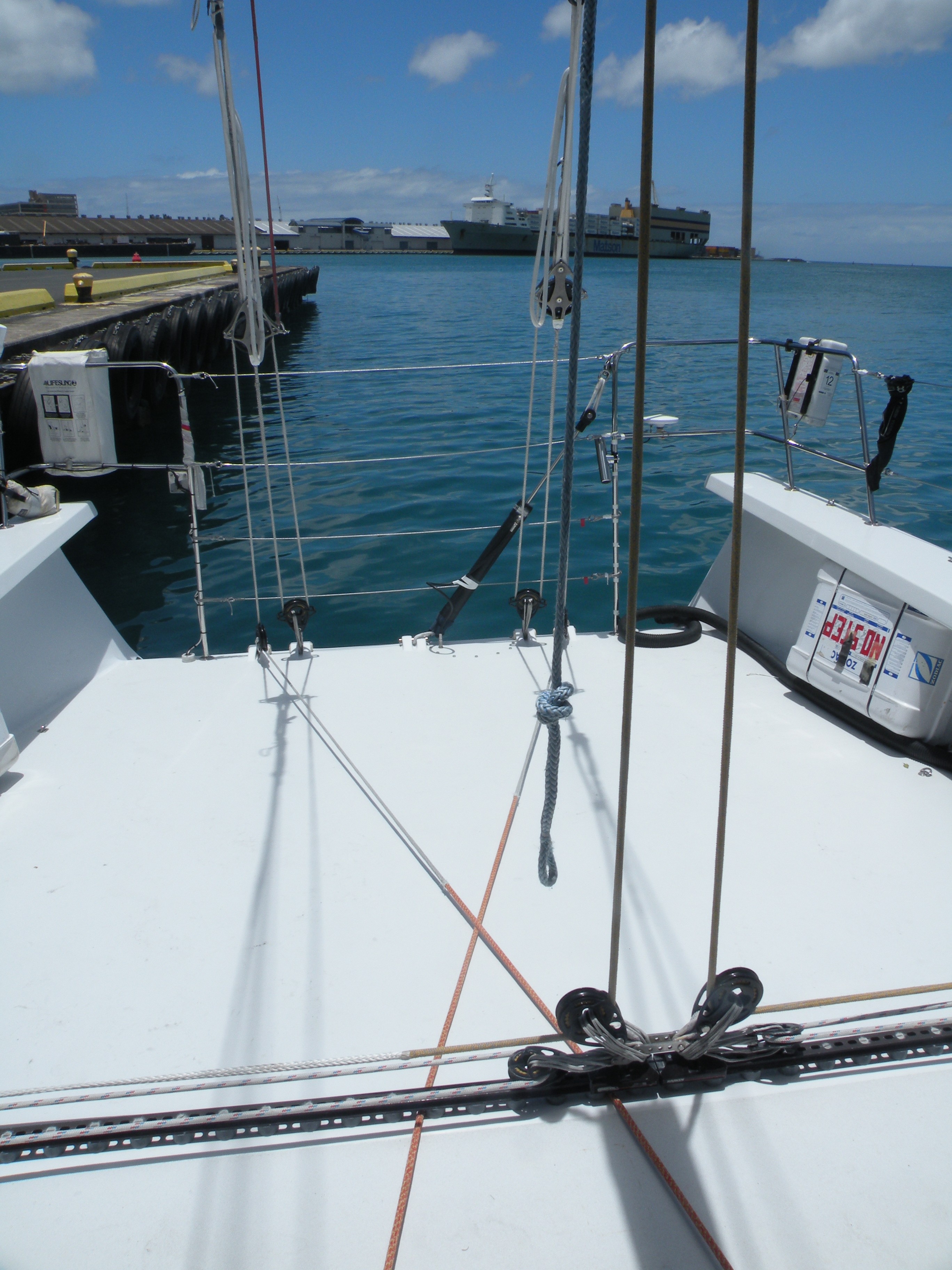 Not exactly a cruising boat but certainly interesting from the perspective of racing across oceans. She couldn’t even get into the Ala Wai Yacht Harbour due to her draft and had to moor in the commercial port.