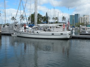 Our stop at Johnston was a result of some needed repairs we did to the self steering gear and a few other minor problems not the least of which was no water coming out of the engine exhaust. We managed to repair both these problems and our entrance and exit was accompanied by thousands of sea birds which have begun to re-populate the island since the military departed. It’s a tricky entrance and not exactly the most protected of places. One would not like to be there during a hurricane!