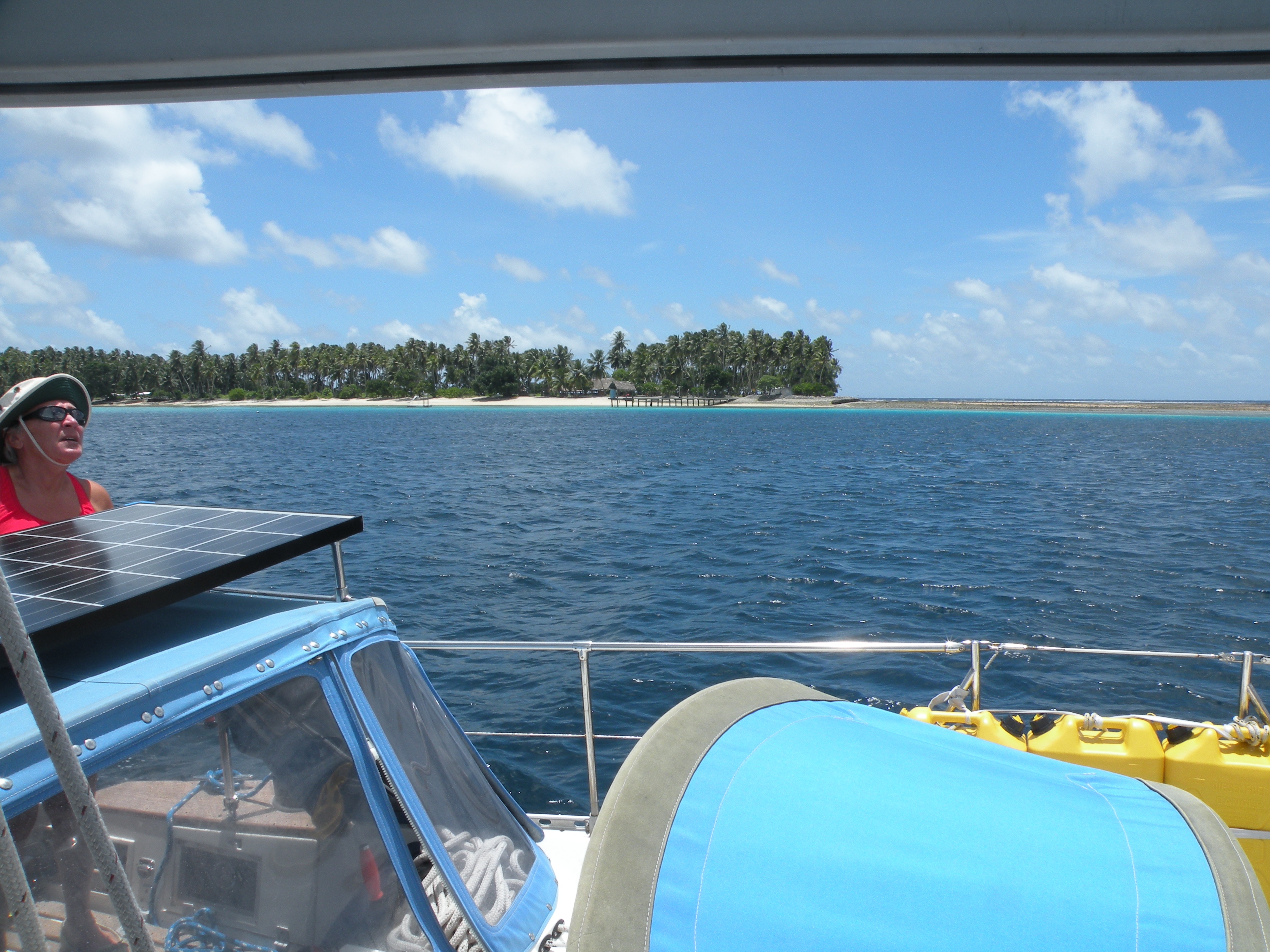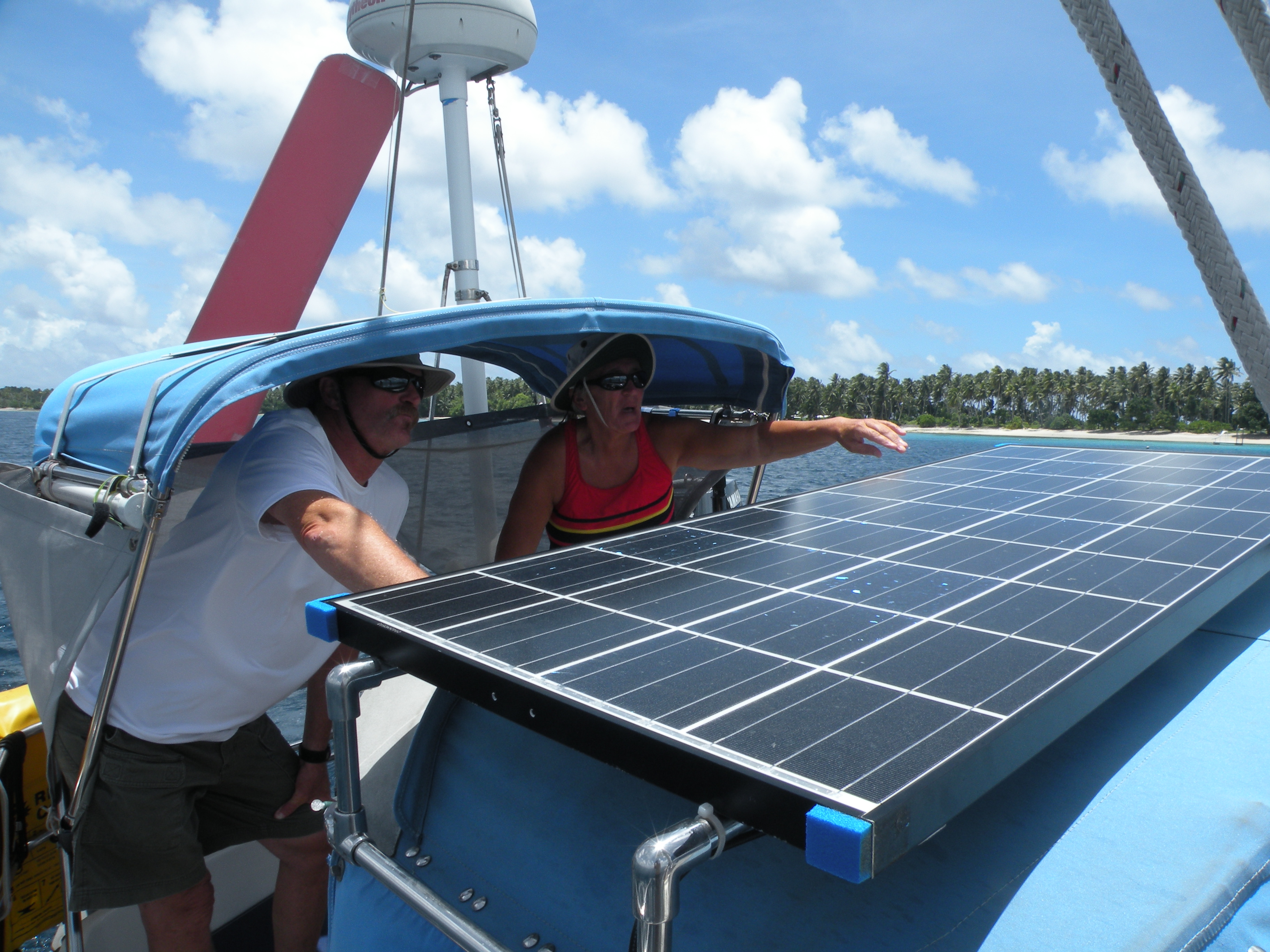 We’re now ‘on the hook’ – sailors language for being at anchor. We now have to be self-sufficient; at least self-sufficient in terms of electricity, water and making repairs. Water and electricity are the biggest items on the list. We’re trying to collect enough water to sustain ourselves but it means waiting for the rainfall which is hit and miss at this time of the year. We wait for conditions to change and for the Inter Tropical Convergence Zone (ITCZ) to bend northwards from the equator and hope they bring moisture laden clouds from the south to drop here in Majuro. It’s a hit and miss proposition. We’ve only managed to collect 1 X 20 litre container so far and that’s not really enough. Today it’s threatening enough but having waited all morning expecting rain we’ve got nothing. So, what do I do? Head to shore and find the desalination plant, buy 2 X 20 litre containers of water and head back out in the dinghy to the boat to fill up. What do other boats do? Well, most of them seem to have water makers i.e. desalinators onboard so they start their engines and crank out the fresh water. How lucky for them! Ah well, we decided to go without one and we’re doing OK.