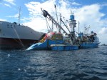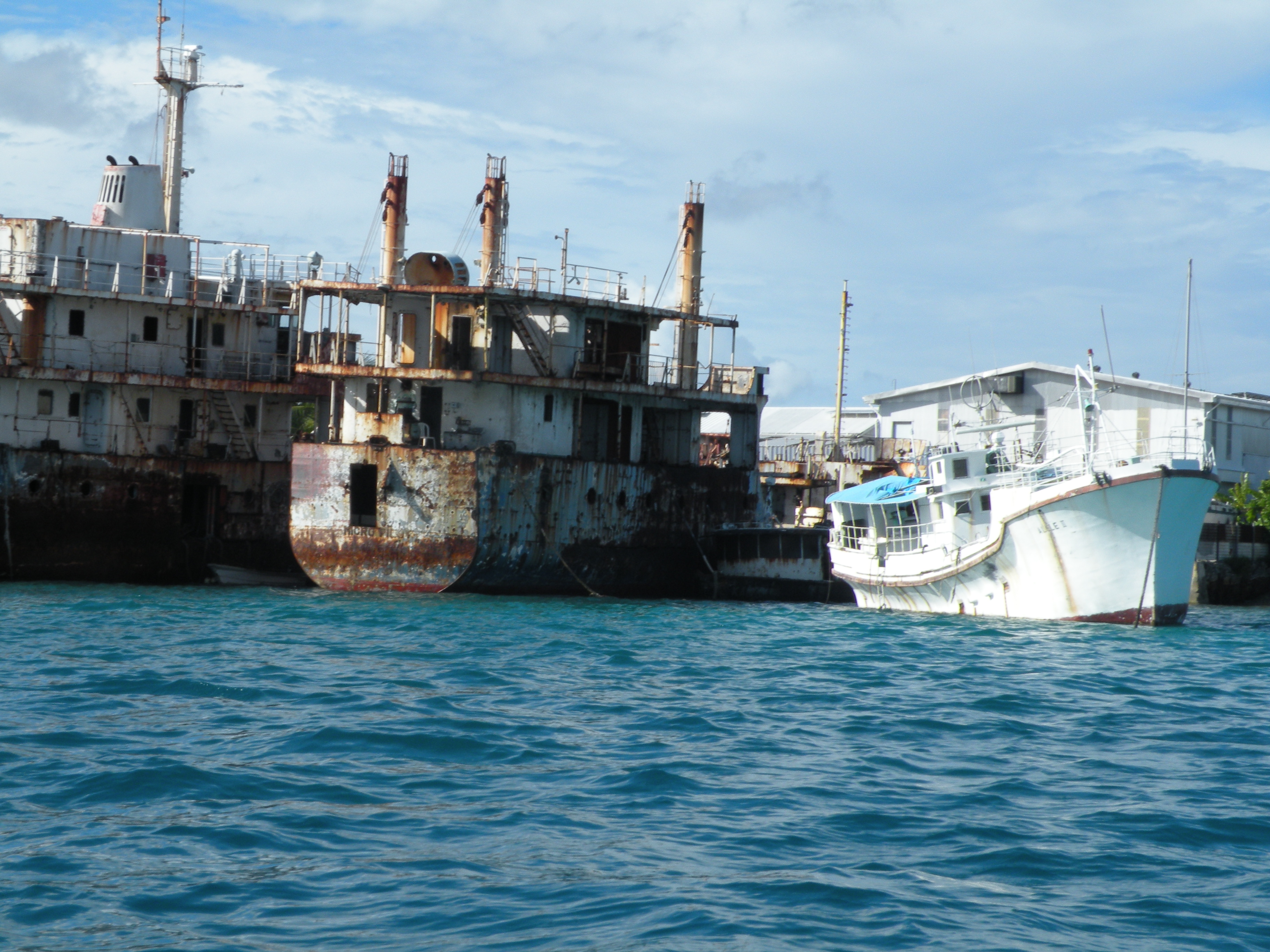 The harbour has only about 15 sailboats anchored in it of which 12 of them are people who live and work here. There’s one cruising boat which was just sold by their owners and the new owners came in a few days ago and are heading off on a nonstop trip through to Singapore, a trip of approximately 2,900 nautical miles. Also in the harbour are cargo ships from Taiwan, China, the U.S. and Japan. They’re loading up with tuna caught by 100 metre long fishing boats that are scouring the local seas for whatever tuna remains. It’s a wonder how much longer the seas are going to continue to produce this quantity of tuna.