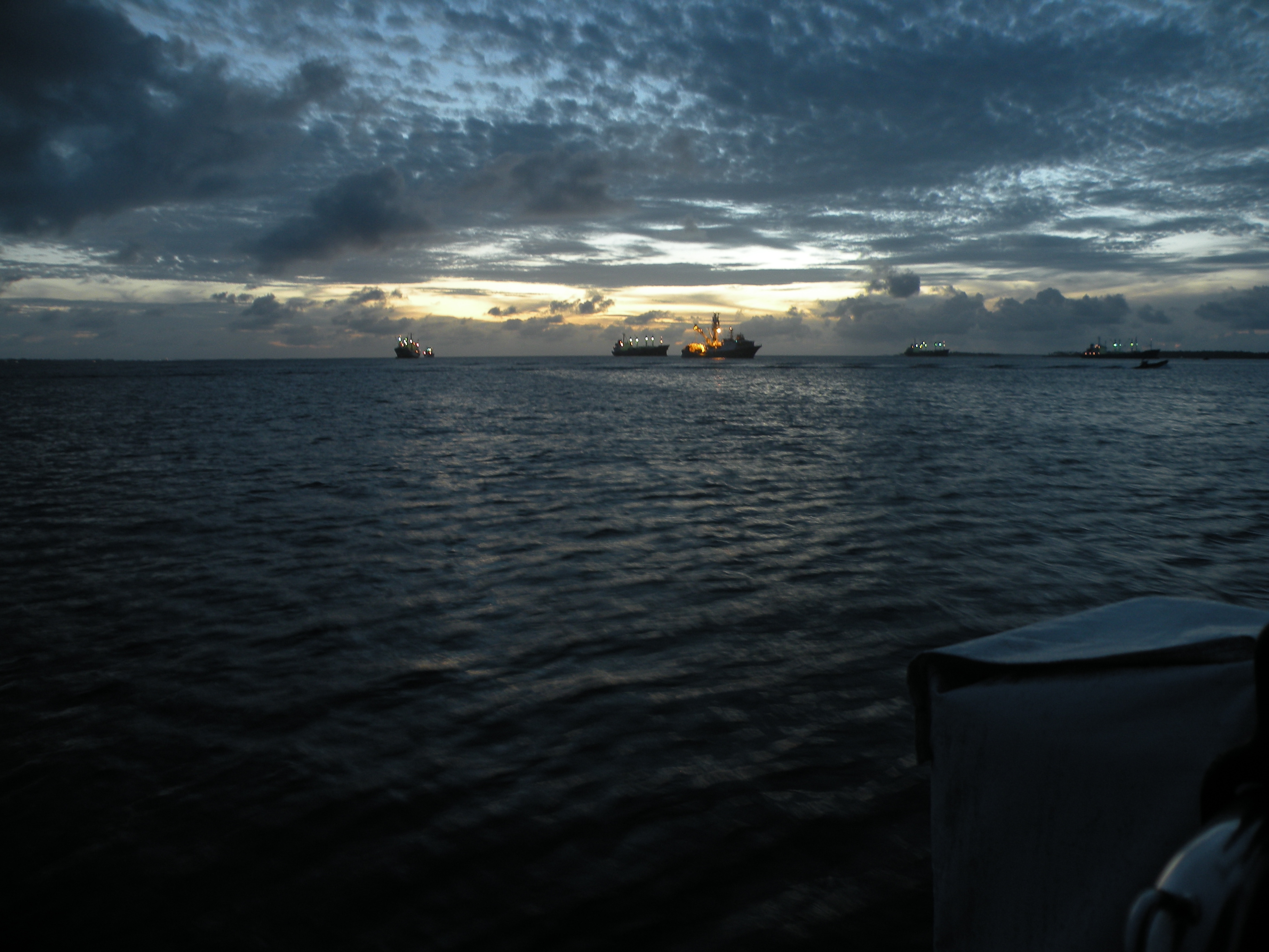 racing for home as the sky darkens and finally a shot out to the west passed the anchored tuna boats and where the sky is considerably different.