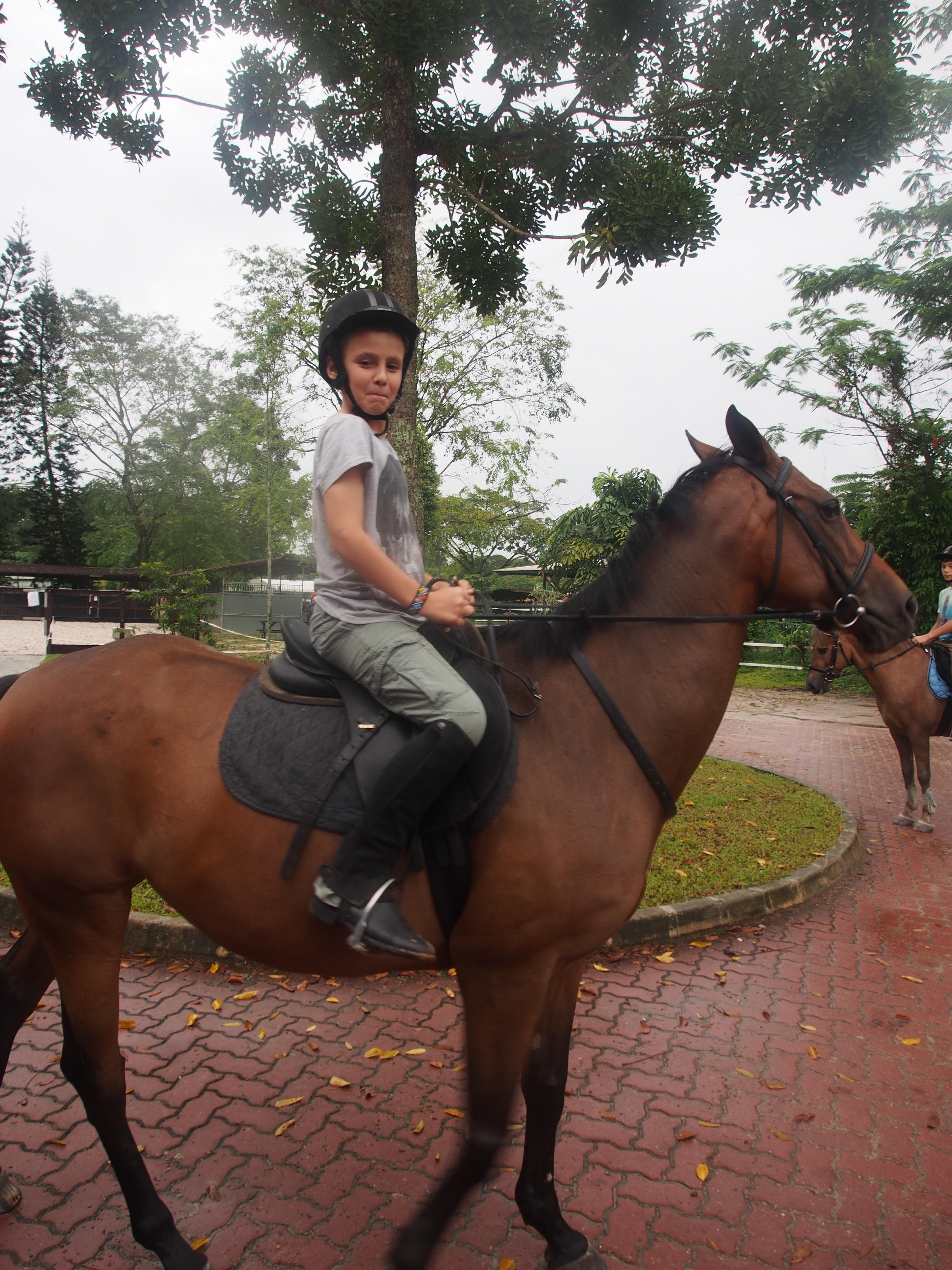 Professional photographer Sebastian Ives-Murphy about to gallop away at the Polo Club, Singapore