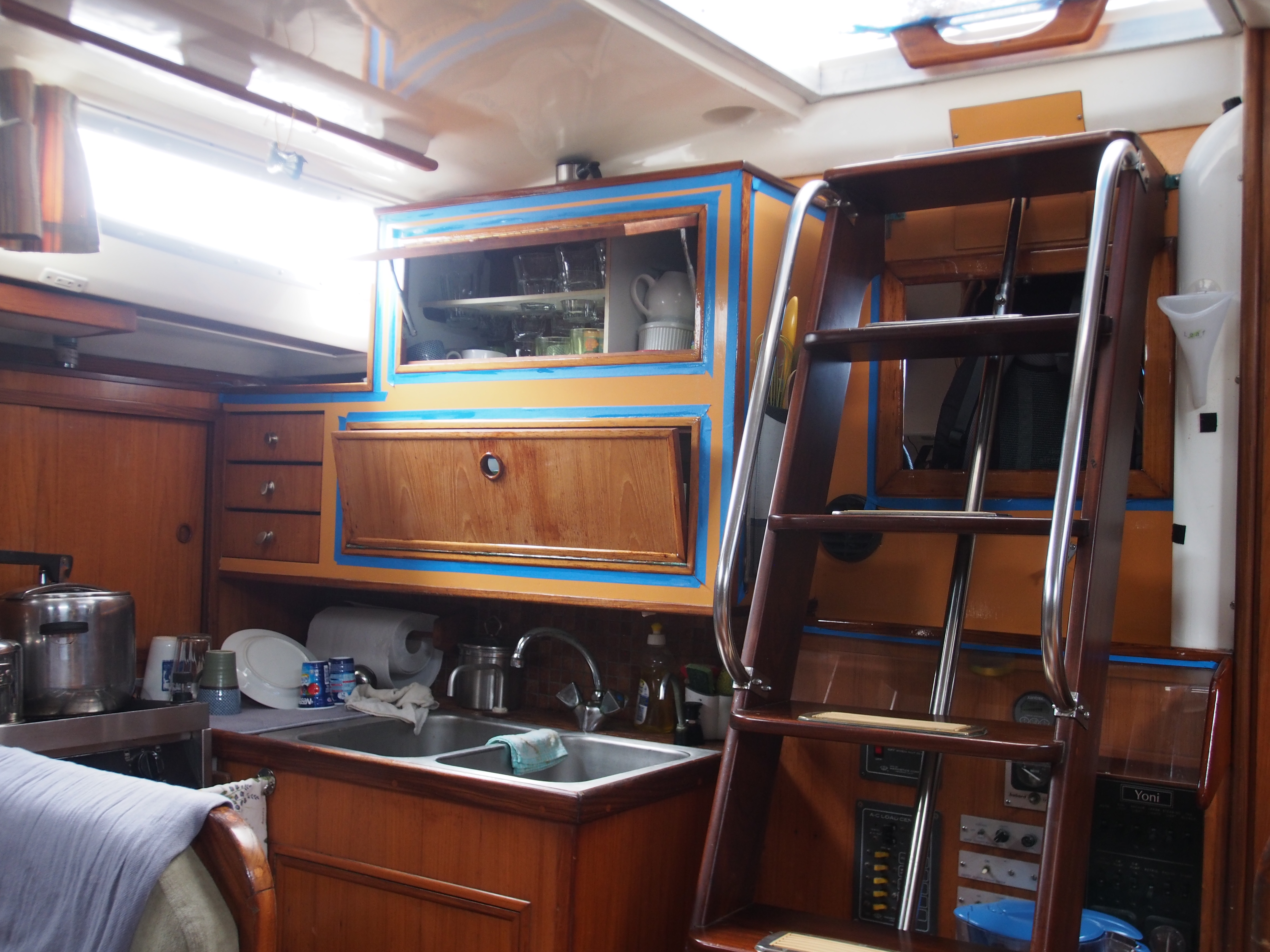 We are not doing the entire interior but rather a small amount at a time.  We are painting over some of the teak plywood as salt and sun damage has done its job in taking the life out of the ply.