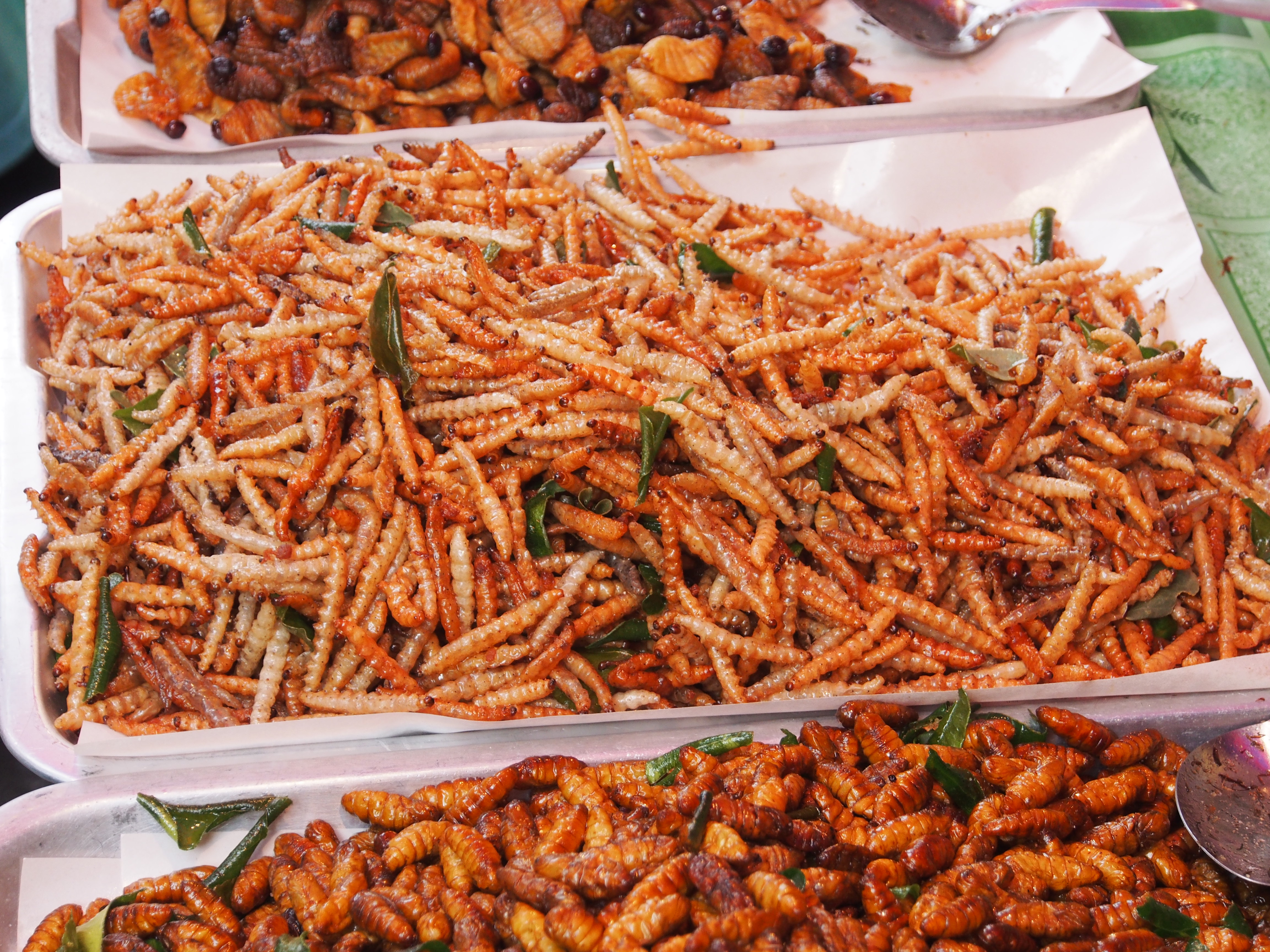 silk worm mealy grubs in a chili sauce. Another delicacy