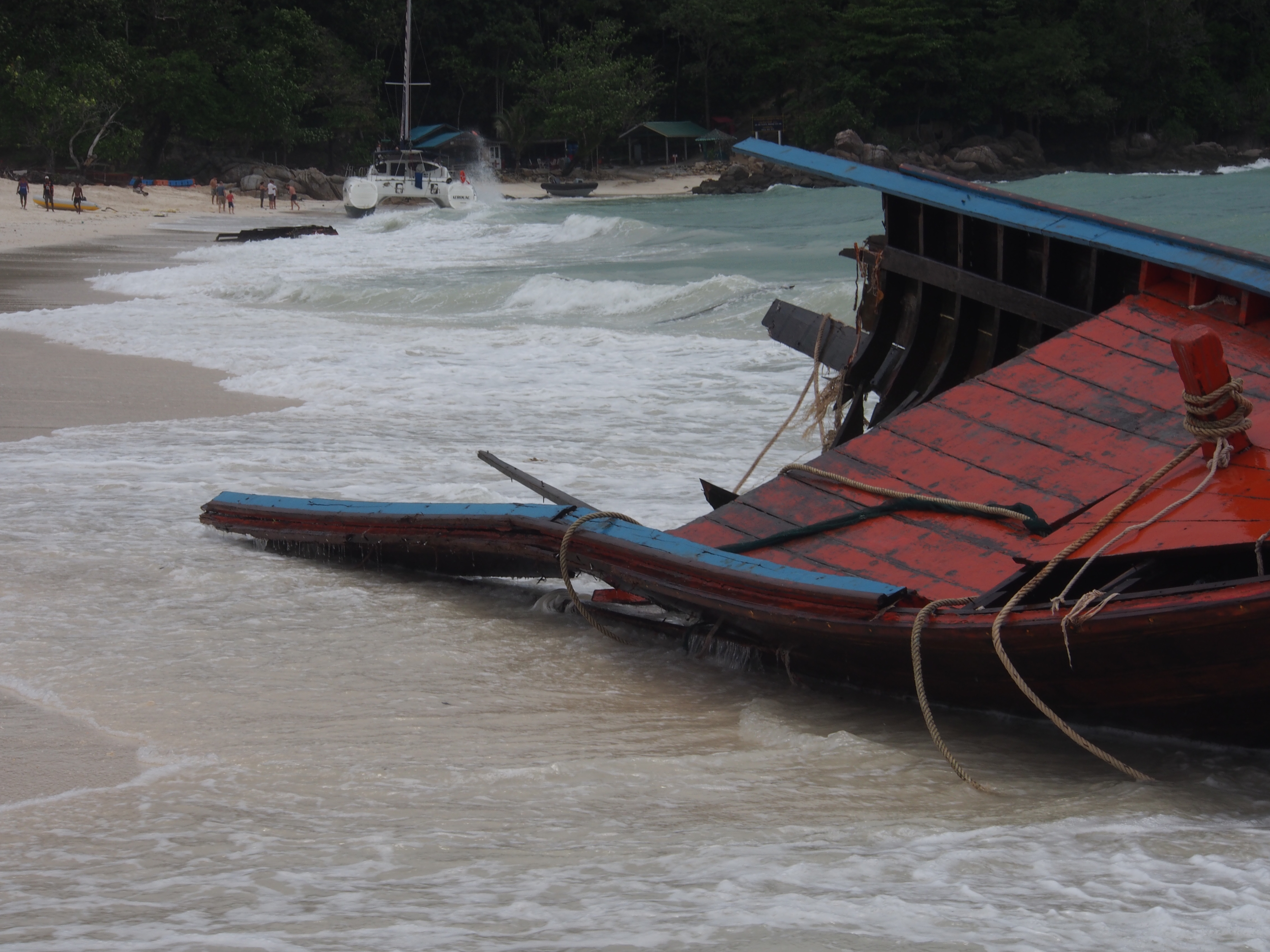 The above scene is in Koh Lipe and is taken in an anchorage where most boats normally anchor but with the southerly winds blowing it left it exposed and those who stayed behind had lots of trouble on their hands