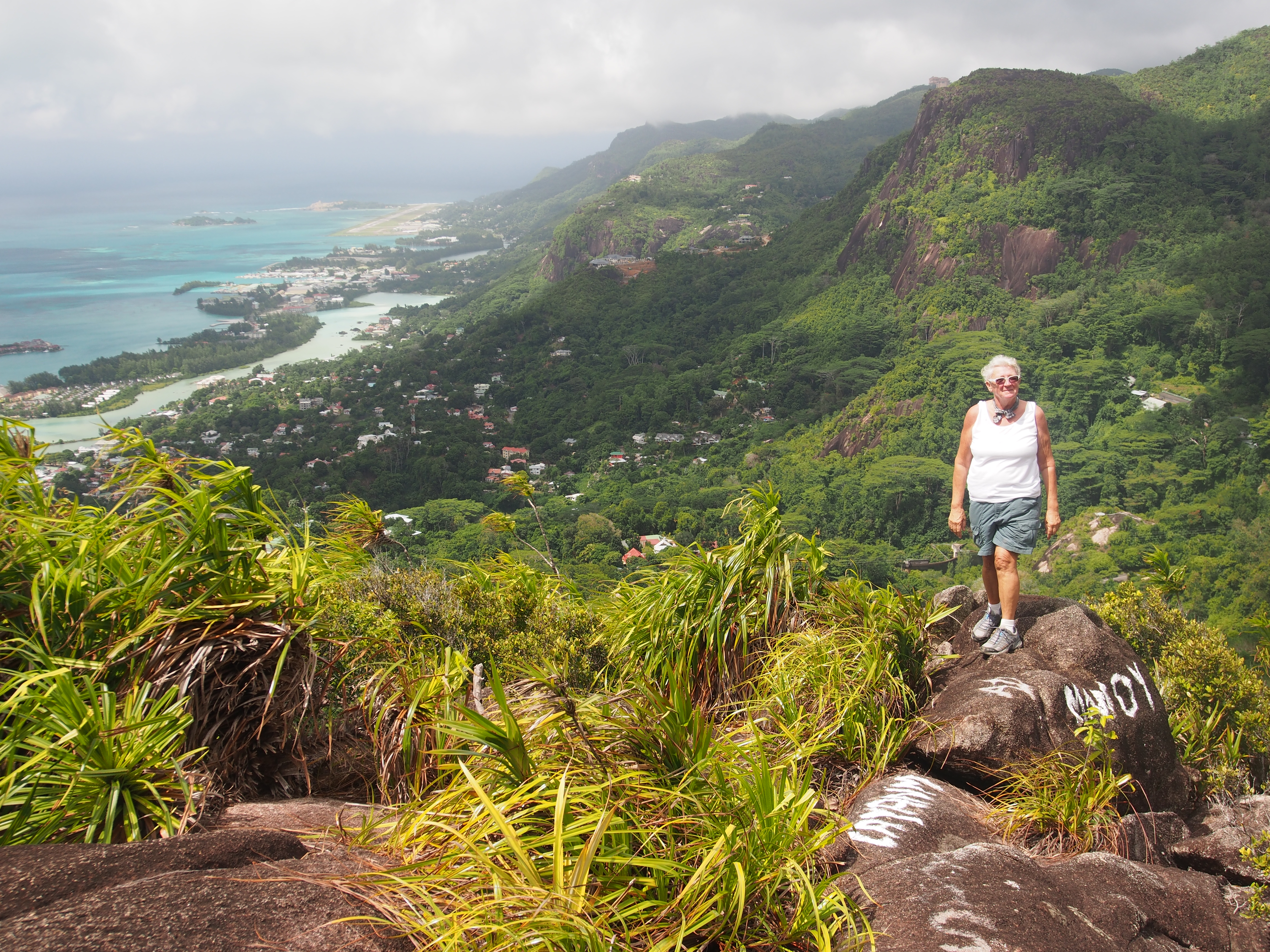 had a car we suggested a stroll up the path to the 438 metre high Trois Freres mountain that looks down on our anchorage and over the town of Victoria.