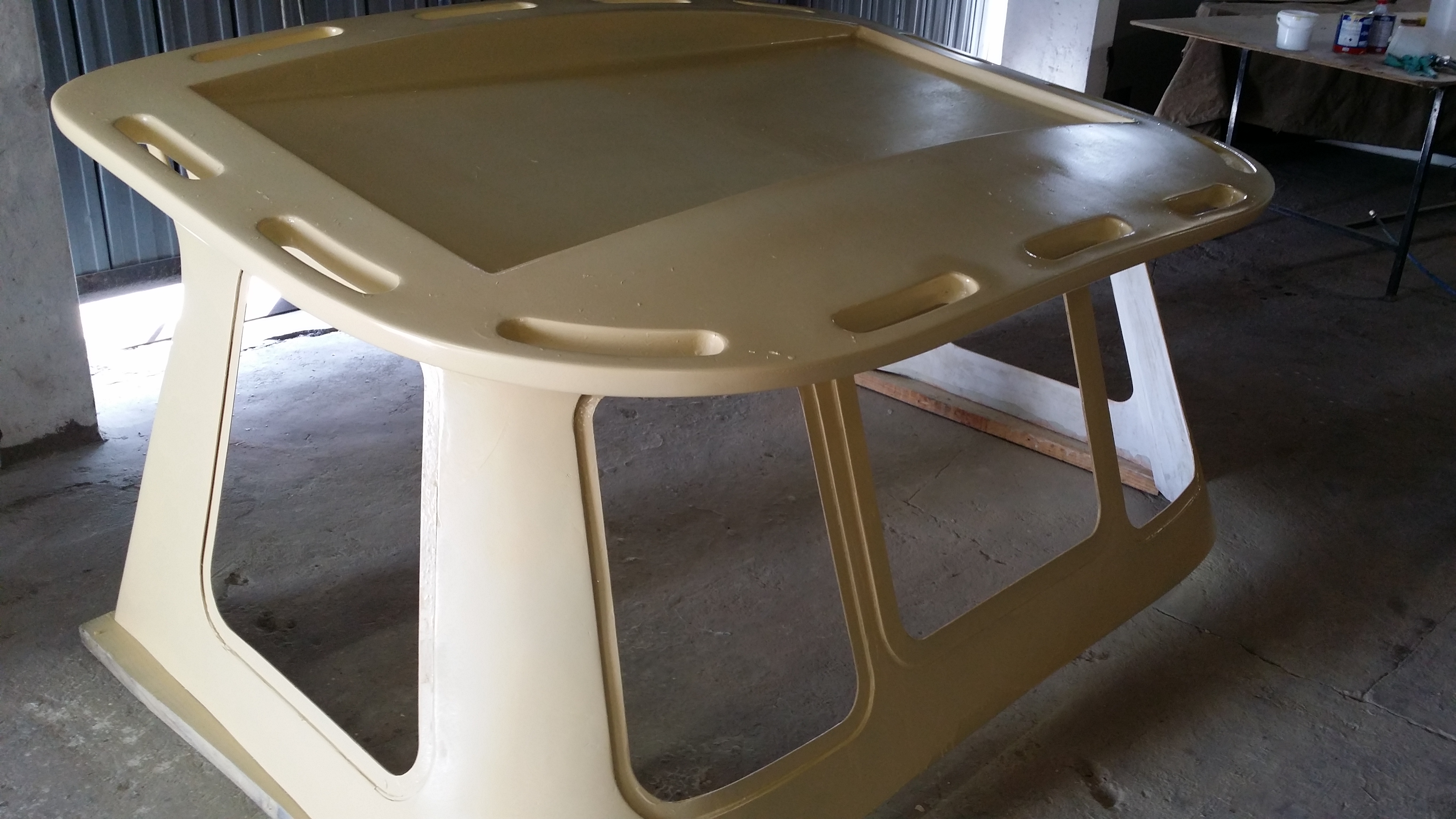 After completion of the basic wood structure the unit had to be prepared for fiberglassing which takes a lot of work making coved corners and preparing the surface structute. Here the inside has been glassed and thecoutside has been glassed and received the first coating of fairing compound. The fairing compound is actually an easily sandable paint which is applied in several layers before the final paint coatings are applied.
