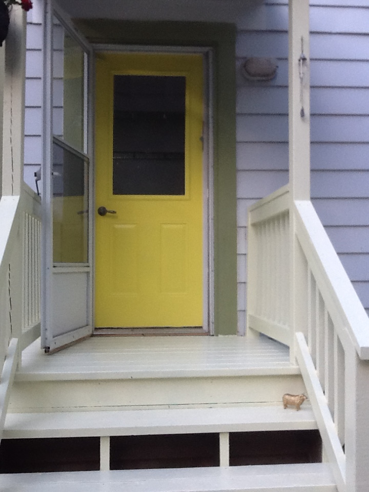 Connie was hard at work laying out garden foundations and rejuvenating a paint-starved wooden entrance-way and a few chairs as a way to help out on a newly purchased home.