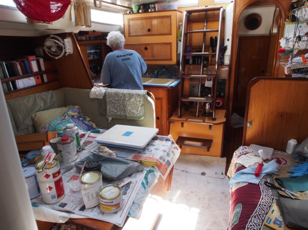 Returning to Sage meant a haul out and a preparation for further voyaging. The first item on the agenda was to haul Sage out of the water, paint the galley, clean  and re-paint the anti-fouling and start on painting up the cockpit. Here is a partial list of all the items that we had to cover in order to prepare the boat for further adventures: