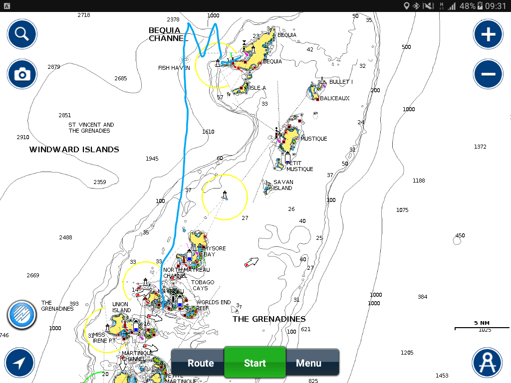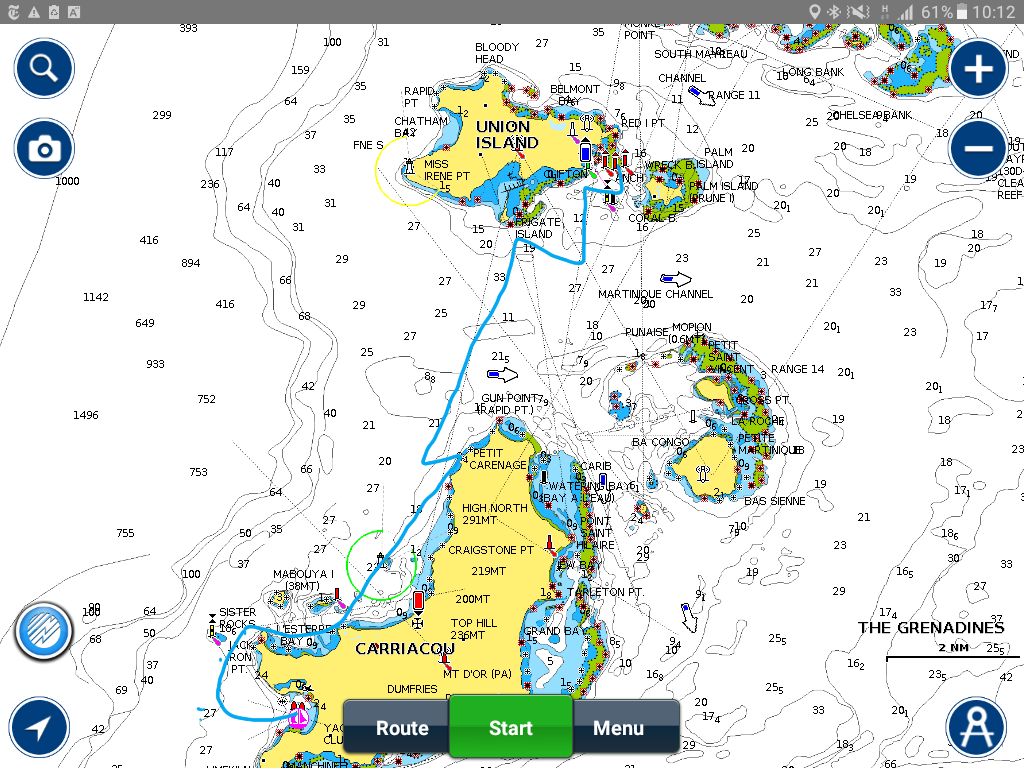The wind we ENE which enable us to hold a tack putting us close to the harbour on Bequia. But you can see from the above map that the last few miles we had to tack in. Salt soaked and a little tired we set the anchor down, turned around and who was coming in but Strider. They had been very keen to see Bequia and decided it was worth motoring up  so left about an hour after us and we came in at almost the same time. We were happy to be able to share another anchorage with them before they headed back south to put the boat up in Grenada while we continued northwards.
