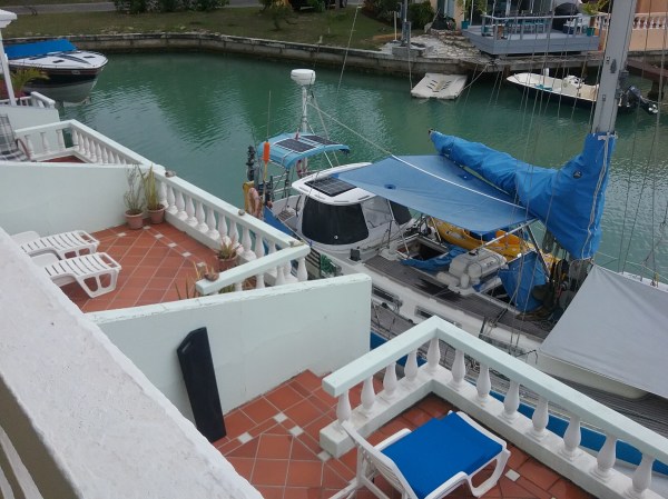 View from the townhouse bedroom balcony. Perfect place to work on                                            the boat! But, did we!