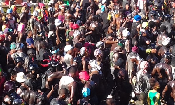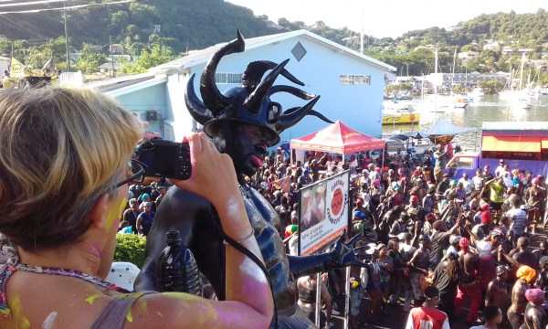 Carnival is a celebration of end of harvest, i.e sugar cane, and emancipation hence chains being dragged along with some human form attached. When I say a human form it’s because everyone has been up all night dancing away and drinking and most humans are staggering along although still very animated.