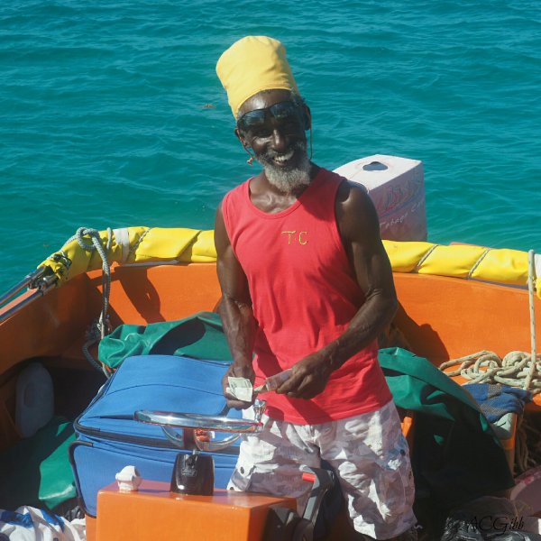 Our favourite salesman was this chap, sorry that I don’t remember his name, who started a conversation with us about the great BBQ on shore but then not feeling there was any chance of a sale (beach BBQ was $100EC/person) he moved the conversation on to the war in Afghanistan. 30 minutes later of liming he motored away promising us banana bread the next morning. Sure enough the morning banana bread arrived ($25EC – $12cdn) mostly unrisen and not cooked throughout. We still enjoyed it and continued our liming in the morning.