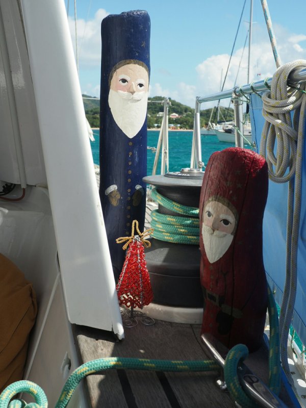 Who would carry wooden wise men on boar their boat? You obviously are in a calmer amchorage than we are. We need safety harnesses to keep them in place on Strider.