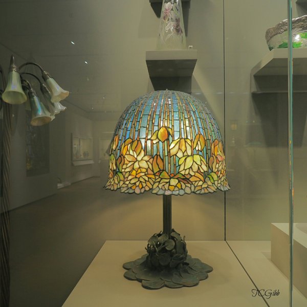 Part of the Chrysler Museum’s glass collection of Tiffany lamps