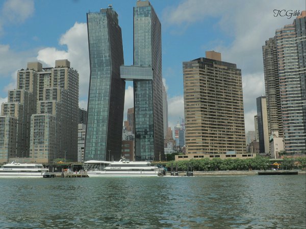 If you ever go to New York, and you don’t have a luxury yacht like ours, make sure you take a tour up the East River. It was spectacular. All New York in its glory to see with helicopters circling overhead bringing tourists and businessmen into town, bridges with screeching railway cars crossing the Brooklyn Bridge, tourist and commecial boats and ferries stirring up the water and best of all the skyscrapers reaching up into the sky in all their glittering windows and steel.