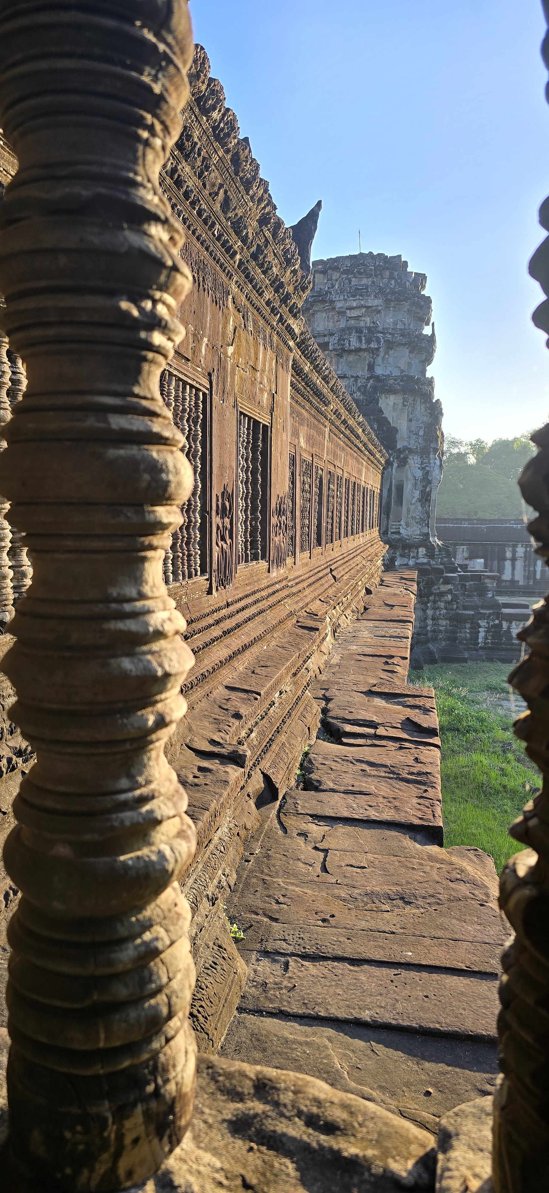 Not a cloud in the sky and an unobstrutured view of Angkor Wat from across the causeway. This doesn’t stop people from carrying high-powered flashlights as they navigate the roough stone walkways, but it can’t take away the magic of the moment.