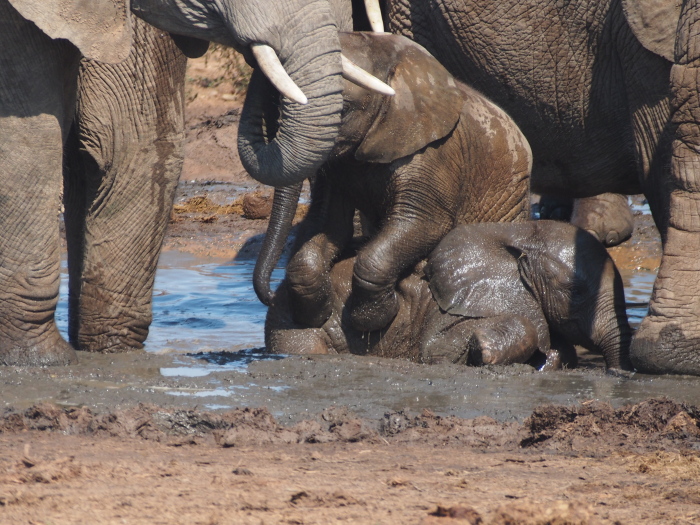 Numerous waterholes abound in the park but this was the best one with lots of young elephants