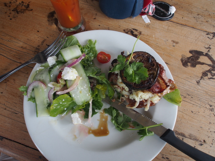 Ummm, delicious kudu burger with eggplant slices instead of bun at Colonial Kitchen