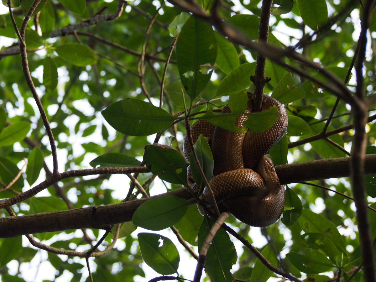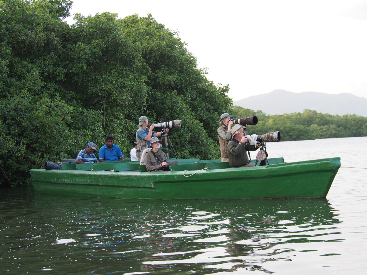 One can go early in the morning (0430hrs) or late in the afternoon (1600-1830hrs). One has to go out by boat so we joined a boat holding about 20 people. Motoring out through the mangrove channels we stopped numerous times for different birds and snakes. Finally we arrived at a rather large expanse of open water within the mangroves and tied up to a stake placed in the water.