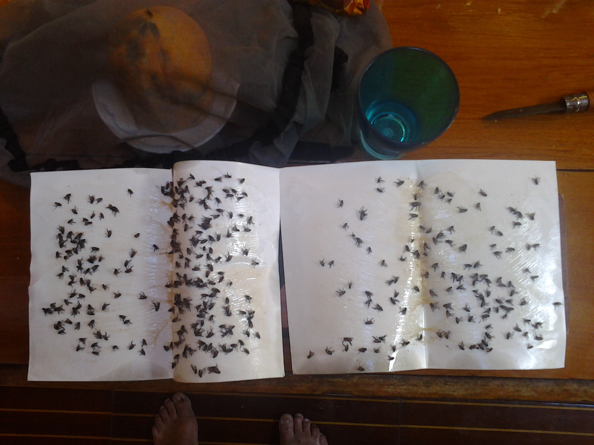 Yes, flies. During the day zillions make their way out to the boat. Such paradise on a yacht cruising idyllic tropical islands. This collection of specimens is a result of only one afternoons catch!