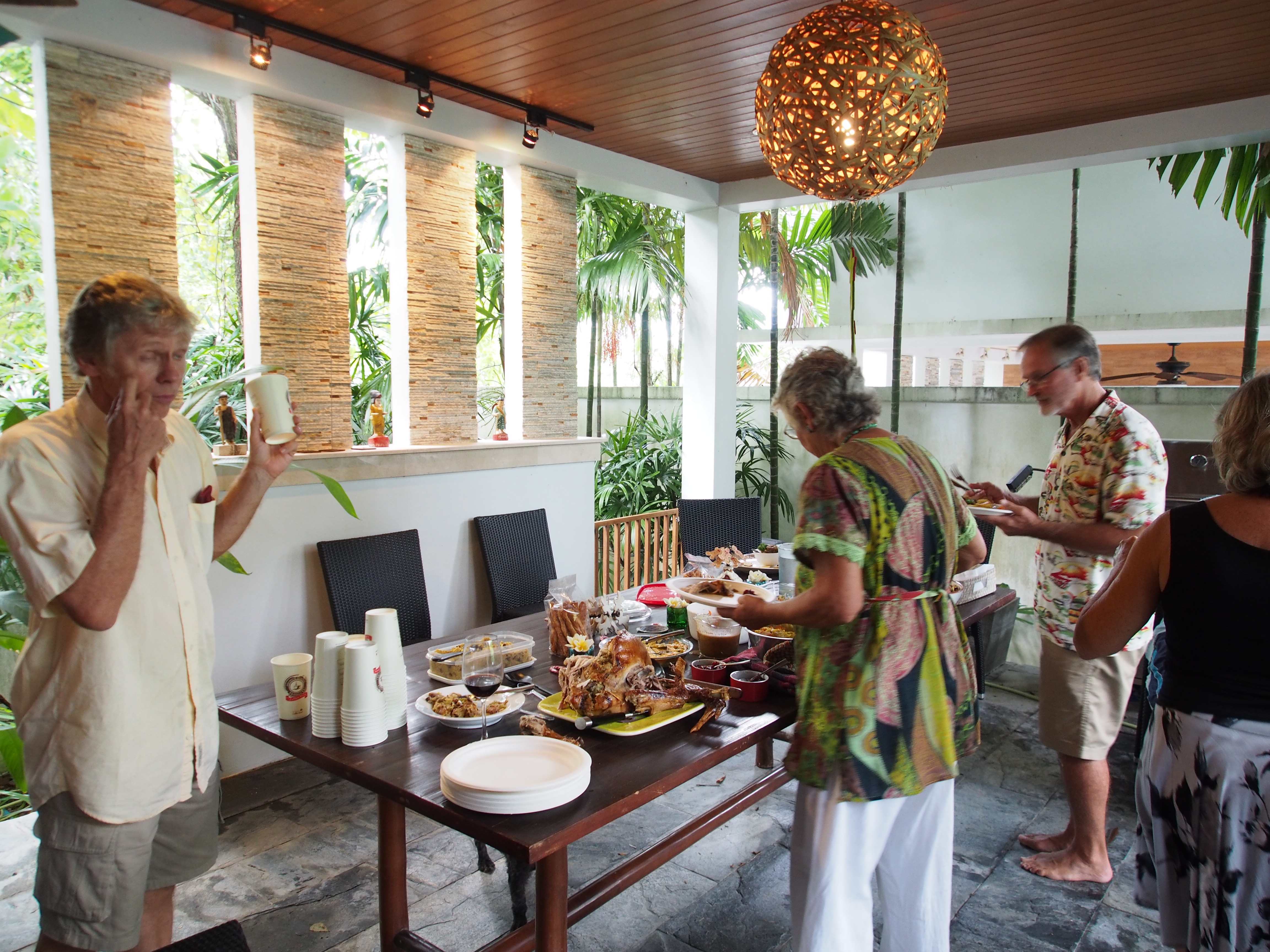 So far we get greater hospitality from the local villages than we ever get from resorts we have tried to anchor next to. We were given the advice that we should give notice of our arrival. So we usually pin point an island to sail to but the realize there’s a resort. We look up the phone number and/or email and send a note or phone asking if it’s OK to drop the anchor close by and come in for a lunch or dinner. Examples of the responses we’ve received are “anchoring will cost $120/night” or “tonight’s buffet dinner will cost $150/person” or “it’s forbidden for yachts to anchor in the lagoon”. I think now we have the picture. Resorts are off-limits. They are very exclusive and located in magical settings. They have everything from the jet skis to the parachute sailing, diving to water skiing and dessert trays that are making us cry out in anguish (at least that’s what the pictures show us on the web). I think they even have ice for their drinks.”I’m coming right over!” But, no, we are decidedly not welcome so we hunker down below sipping on our warm sodas and ginger beer and search in the dwindling stores for something enticing to eat.
