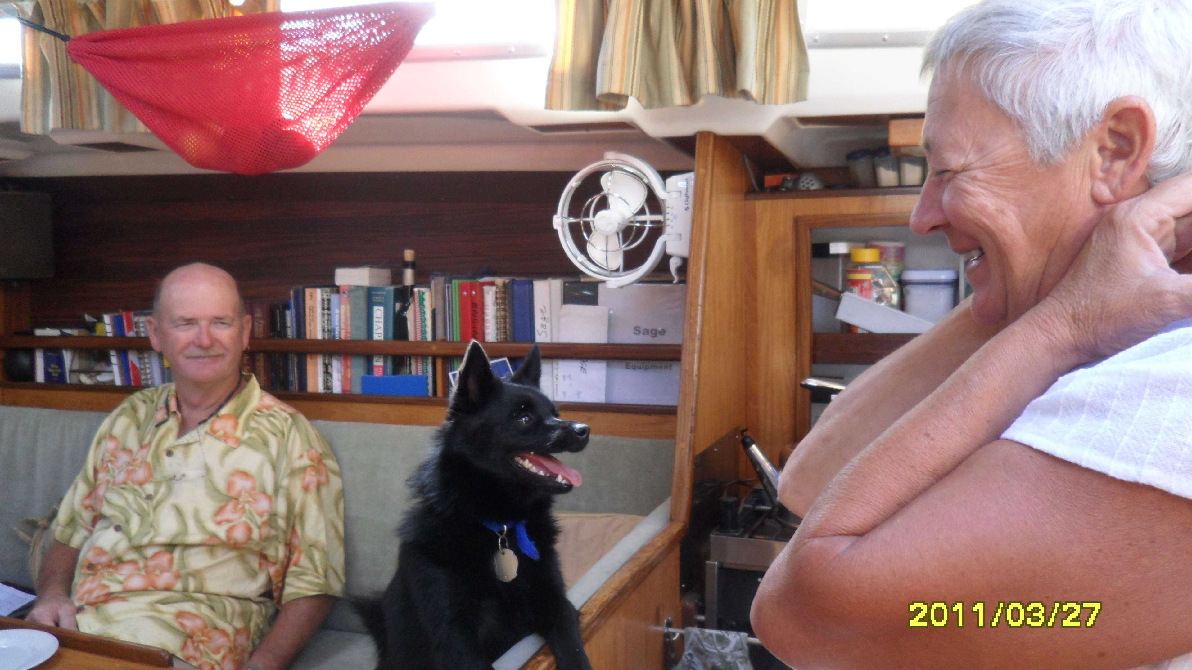 clear skies, a south west wind blowing 10 – 15 knots, the boat full of stores, electricity and water topped up and a new crew member onboard, Bill from San Francisco. Motoring out the channel from the marina we were apprehensive and excited to finally be on our way. Well, 3 hours later we were coming back in the same entranceway with our tails between our legs. Within 15 minutes of leaving the wind had risen to 25 knots accompanied by a playful sea that immediately saw everything soaked with salt water, the main settee soaked due to open hatch, eggs on the floor, egos bruised and salt ½ inch thick coating the deck, rigging, cushions and ourselves. Um, not a good beginning!