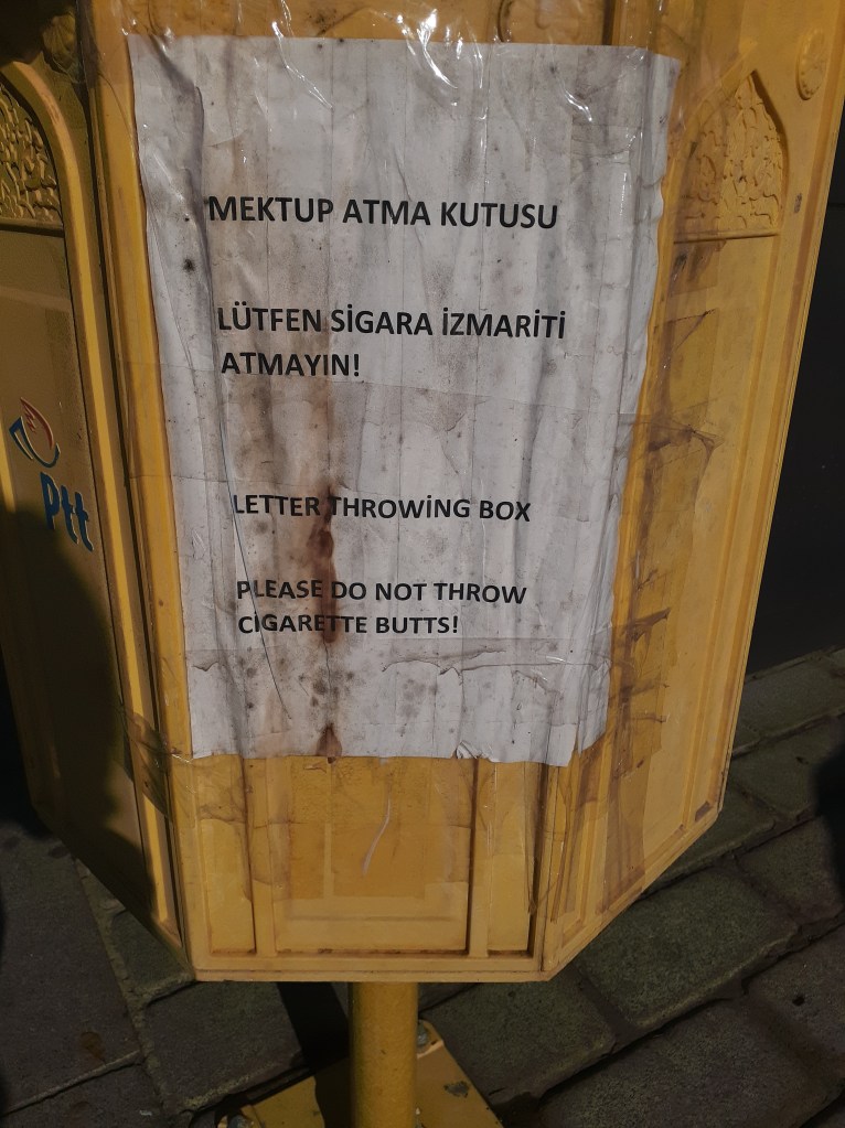 Leaving the area, we kept our eyes out for a post office box where we could mail our postcards. We found this one with an odd inscription. Are our cards going to make it?